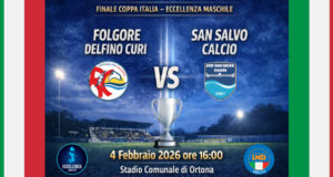 Si disputerà mercoledì 4 febbraio 2026, con fischio d’inizio alle ore 16, allo Stadio comunale di Ortona, la finale di Coppa Italia di Eccellenza maschile tra Folgore Delfino Curi e San Salvo Calcio. L’orario della gara, inizialmente previsto per le ore 15, è stato posticipato alle ore 16 su richiesta delle due società finaliste, con l’obiettivo di favorire una maggiore partecipazione di bambini e ragazzi, permettendo ...