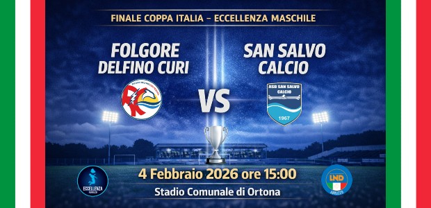 Il Comitato Regionale Abruzzo della Lega Nazionale Dilettanti comunica che martedì 4 febbraio 2026, con inizio alle ore 15.00, si disputerà la Finale del Campionato di Coppa Italia Eccellenza tra Folgore Delfino Curi Pescara e San Salvo Calcio.