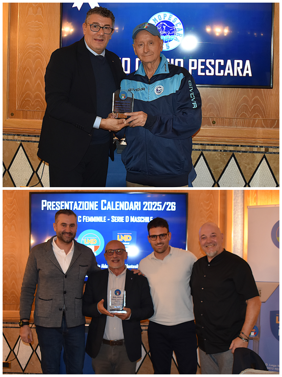 Prima di svelare i calendari sono state premiate le società vincenti la Coppa Disciplina nella stagione 2024/25: Sport Center Celano per la Serie C femminile, Lorentense per la Serie D L’Aquila, Dinamo Calcio Pescara per la Serie D Teramo e Palmoli per l’Under 19. Un momento speciale quello della premiazione della Libertas Stanazzo, la squadra di detenuti del carcere frentano, vincitori per la Serie D Vasto, omaggiati dal presidente Memmo che ha espresso la speranza che il sodalizio possa tornare a far parte della famiglia LND Abruzzo al più presto.